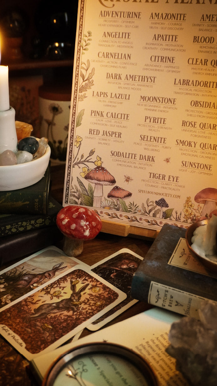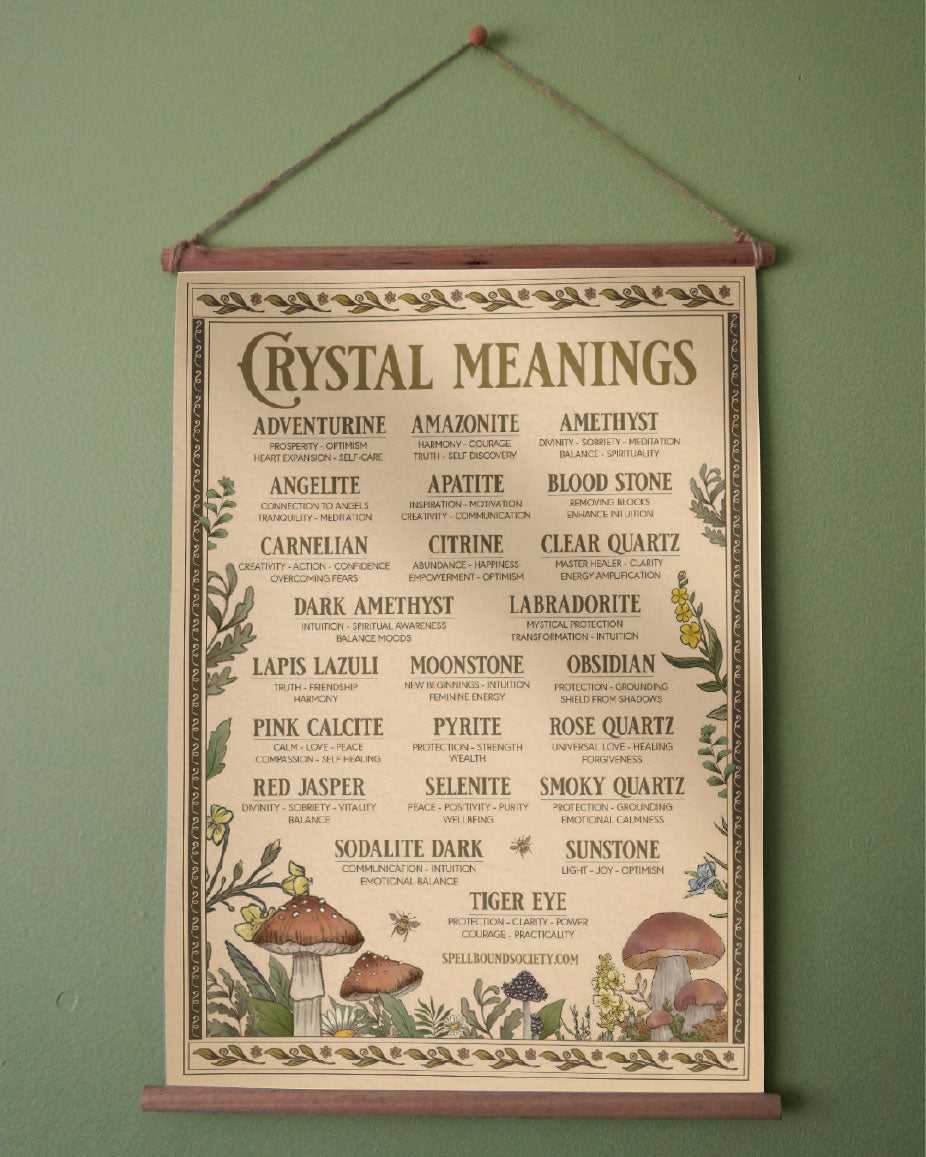 This poster isn’t meant to be an encyclopedia of every crystal. It’s simply a little guide to the crystals I keep in my shop, a small, thoughtful collection that I love and work with regularly.
