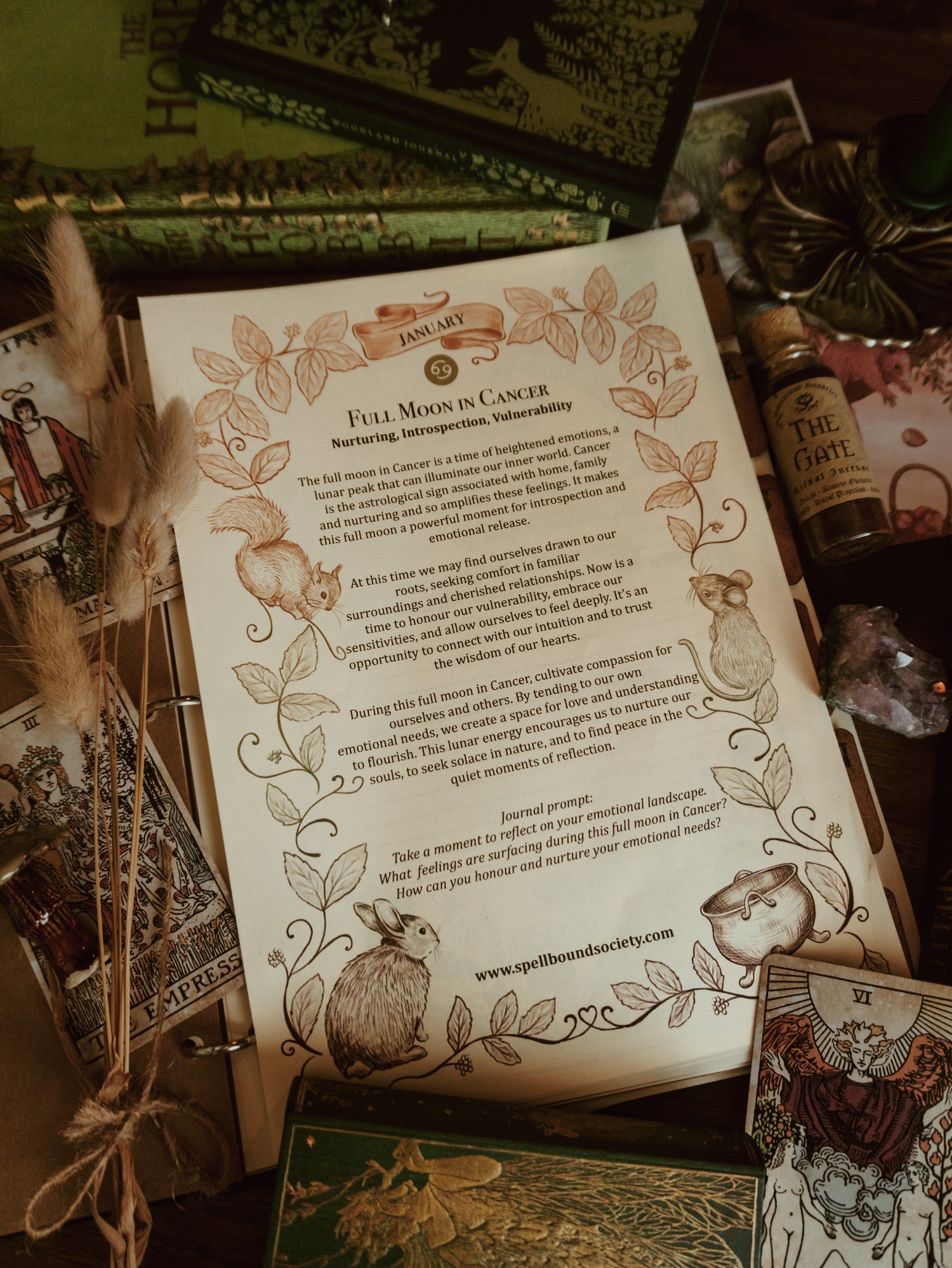 Journal prompt: Take a moment to reflect on your emotional landscape. What feelings are surfacing during this full moon in Cancer? How can you honour and nurture your emotional needs?