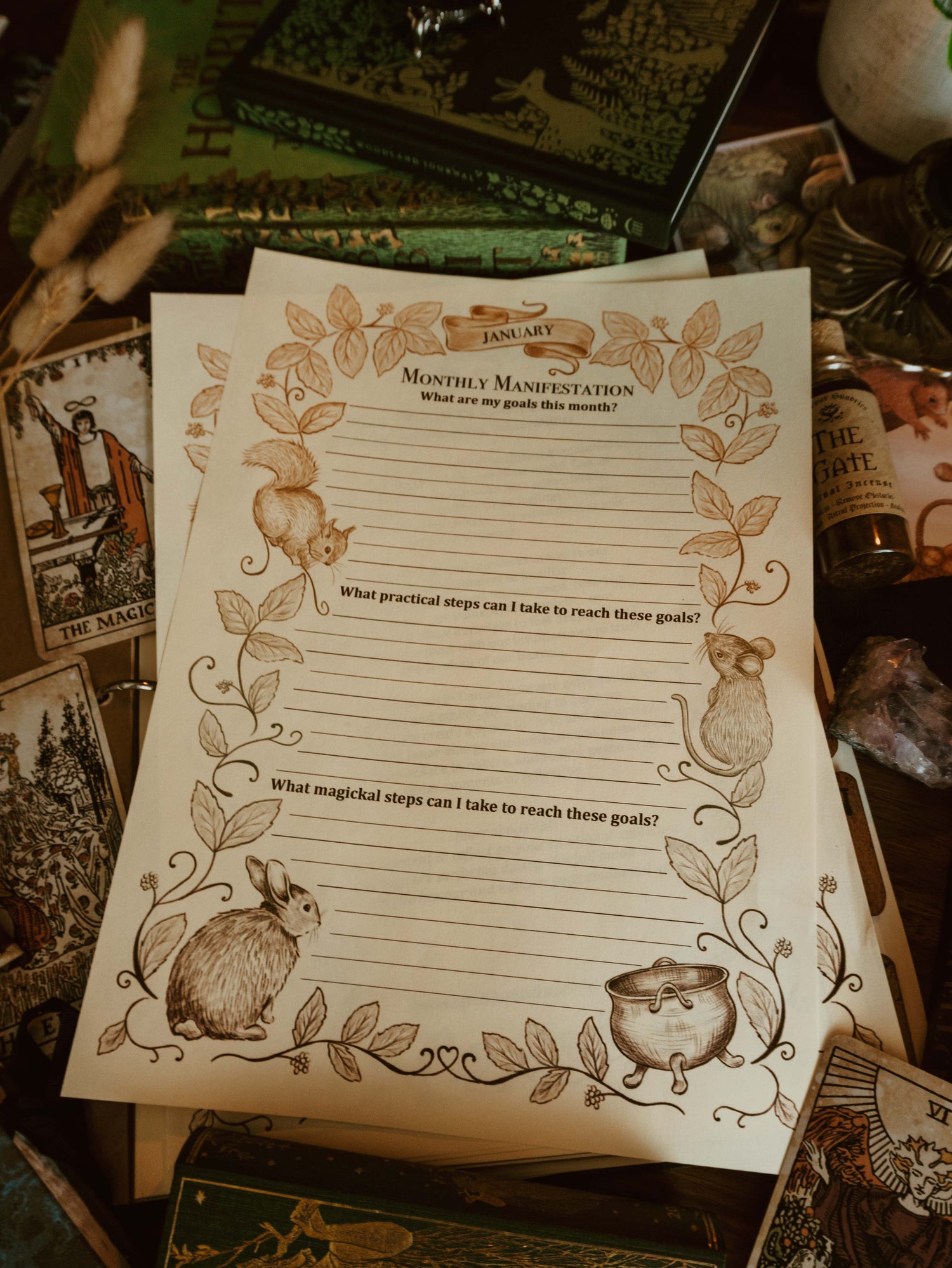 To help you with your monthly Moon Magic, I have written and hand-illustrated Grimoire pages for January Full and New Moon. As well as a page for you to set your intentions and wishes for the month.