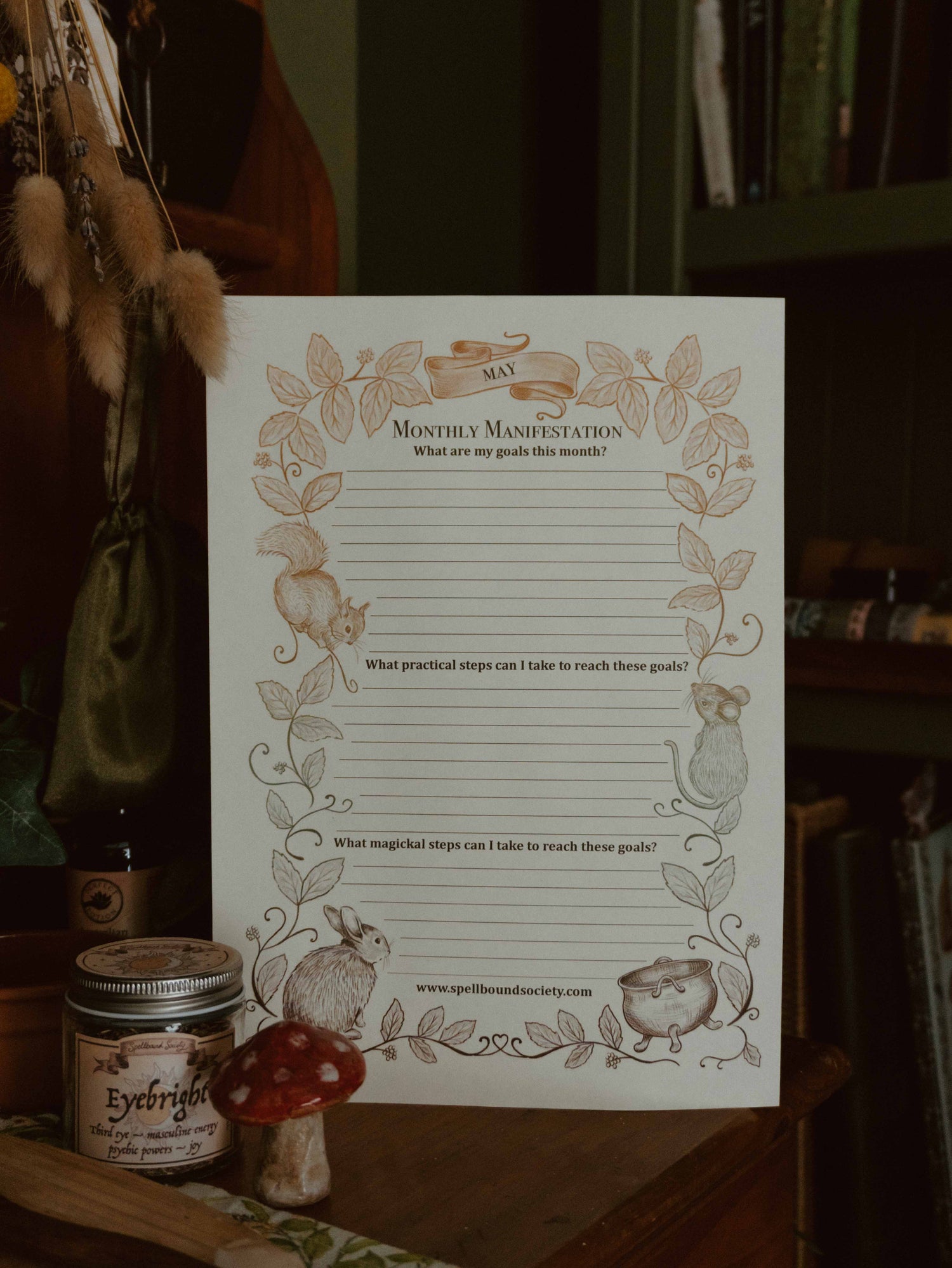 To help you with your monthly Moon Magic, I have written and hand-illustrated Grimoire pages for May's Full and New Moon. As well as a page for you to set your intentions and wishes for the month.