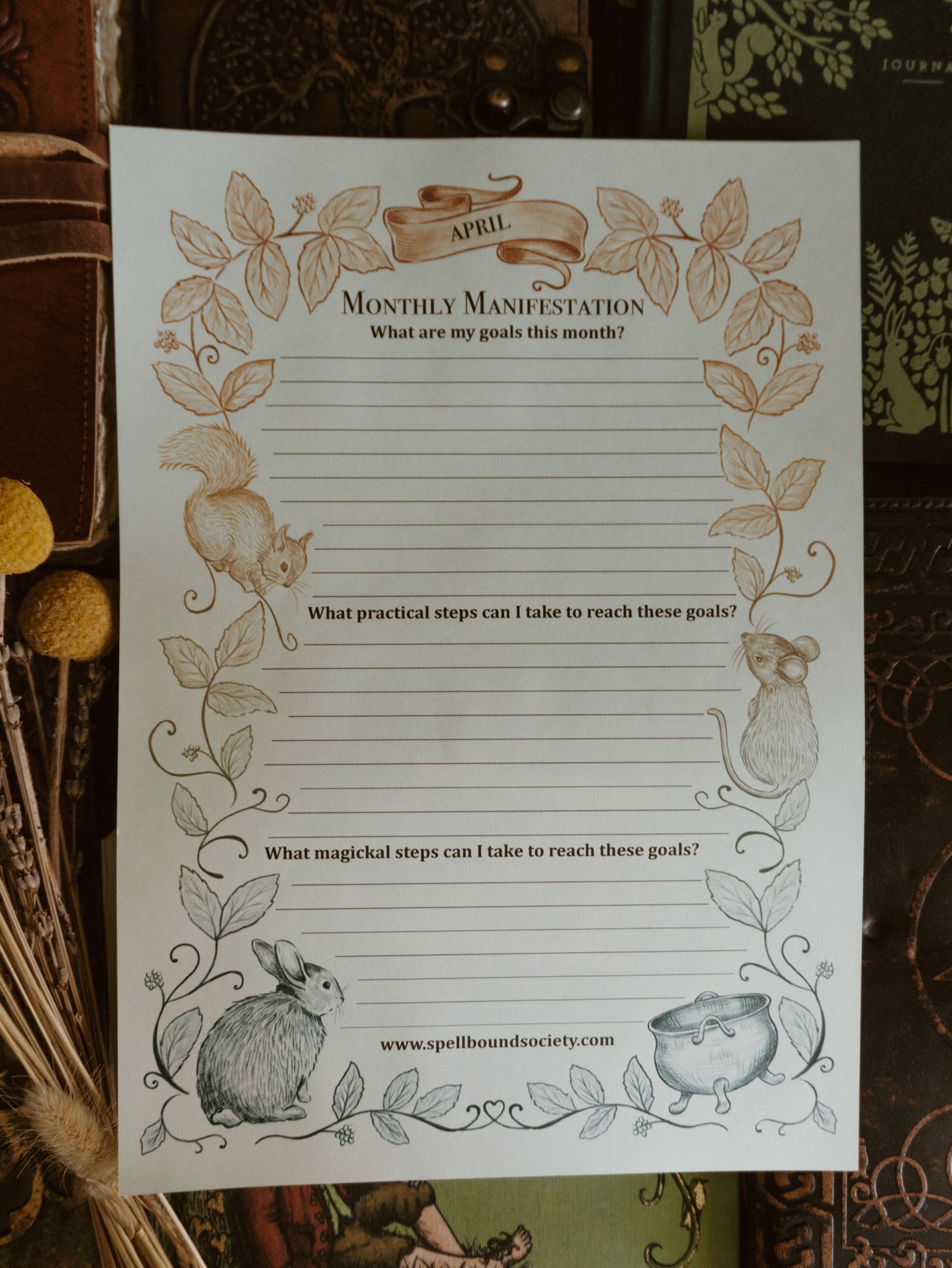 To help you with your monthly Moon Magic, I have written and hand-illustrated Grimoire pages for Aprils Full and New Moon. As well as a page for you to set your intentions and wishes for the month.