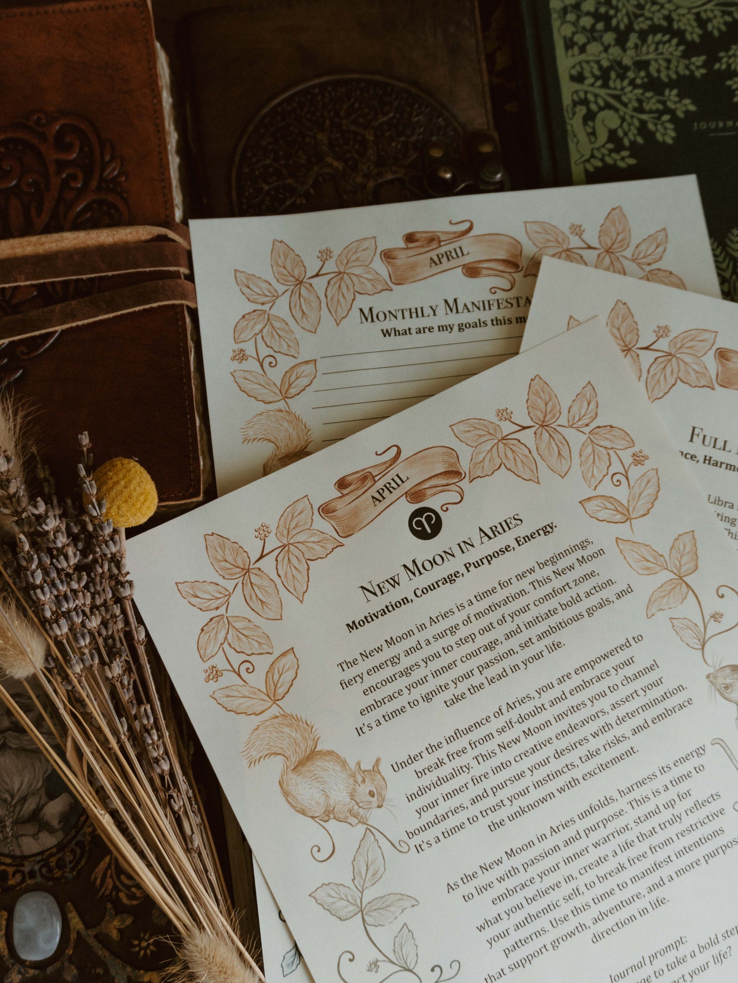 April's Full Moon is in Libra, and the New Moon for April is in Aries. I illustrated and wrote a grimoire page to work with each of these Moon phases along with a monthly manifestation page, to write your wishes and dreams for the month.