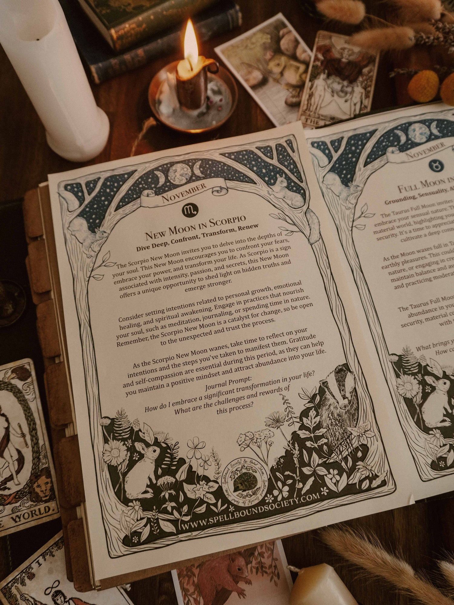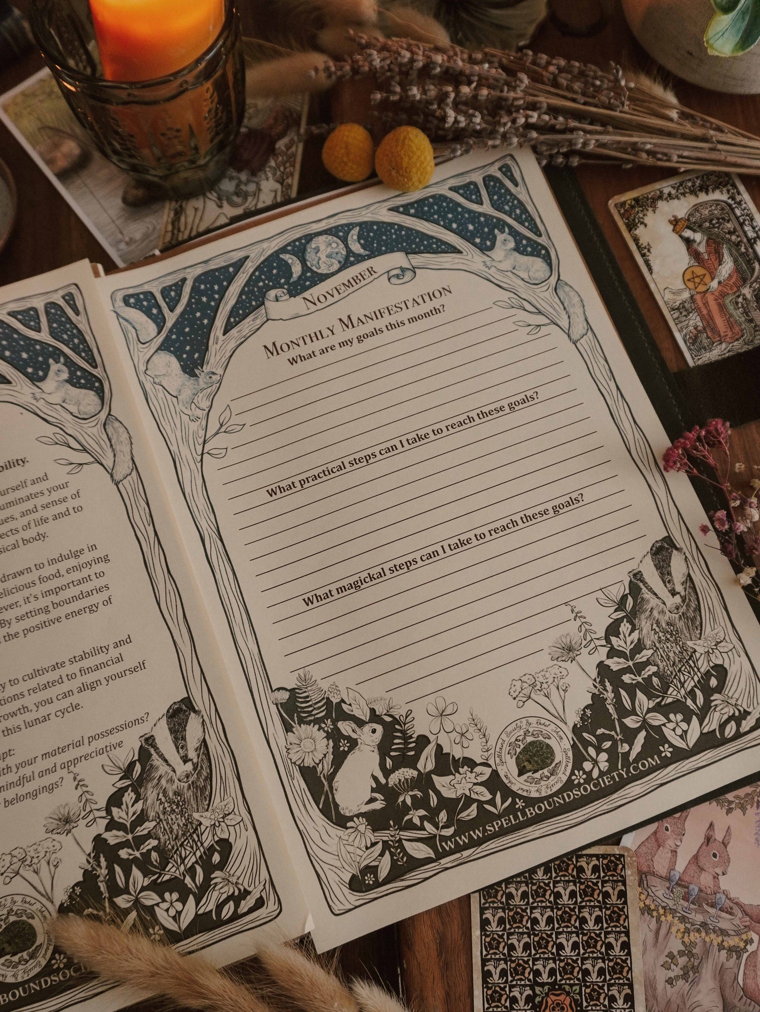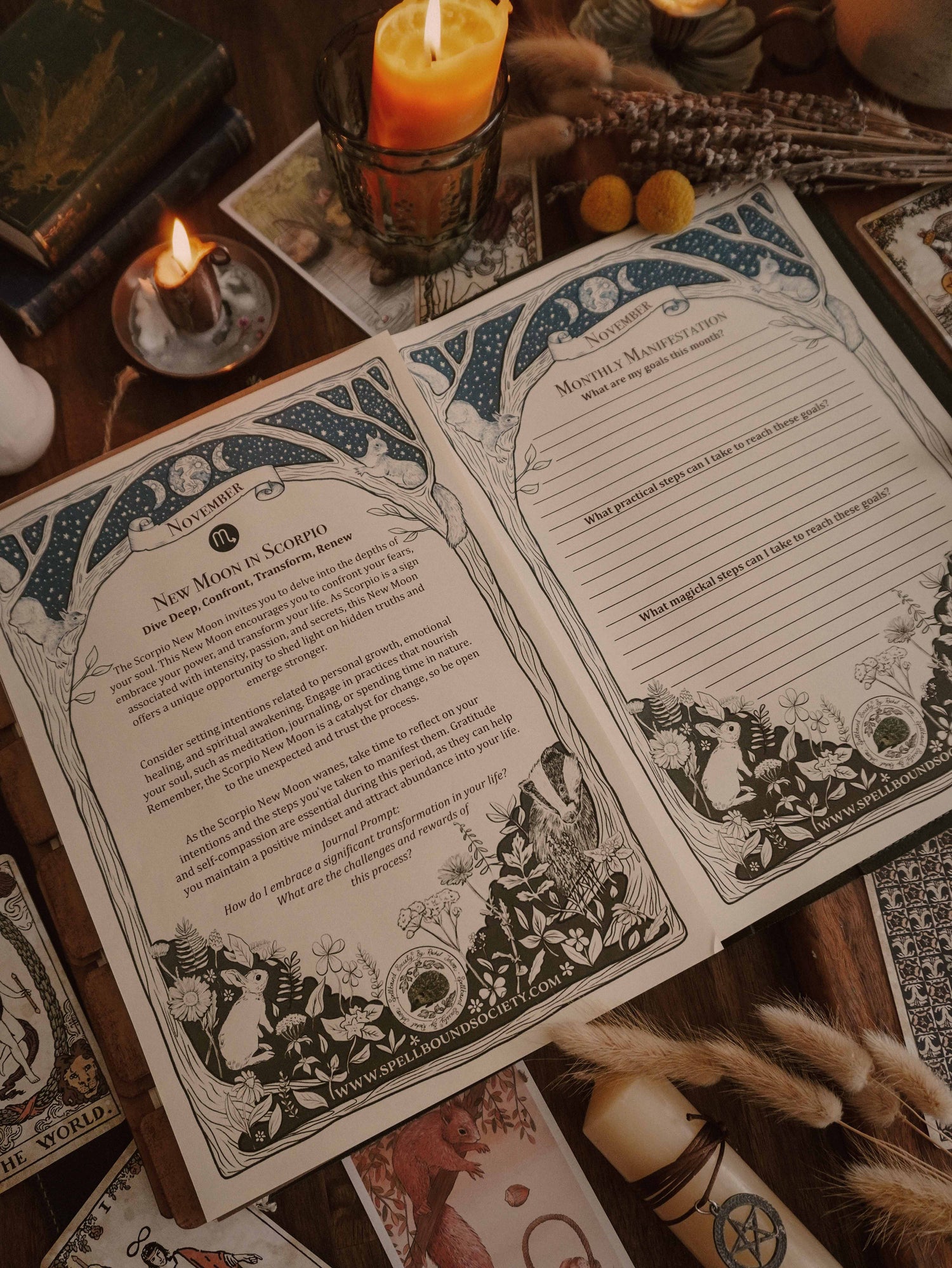 To help you with your monthly Moon Magic, I have written and hand-illustrated Grimoire pages for November's Full and New Moon. As well as a page for you to set your intentions and wishes for the month.