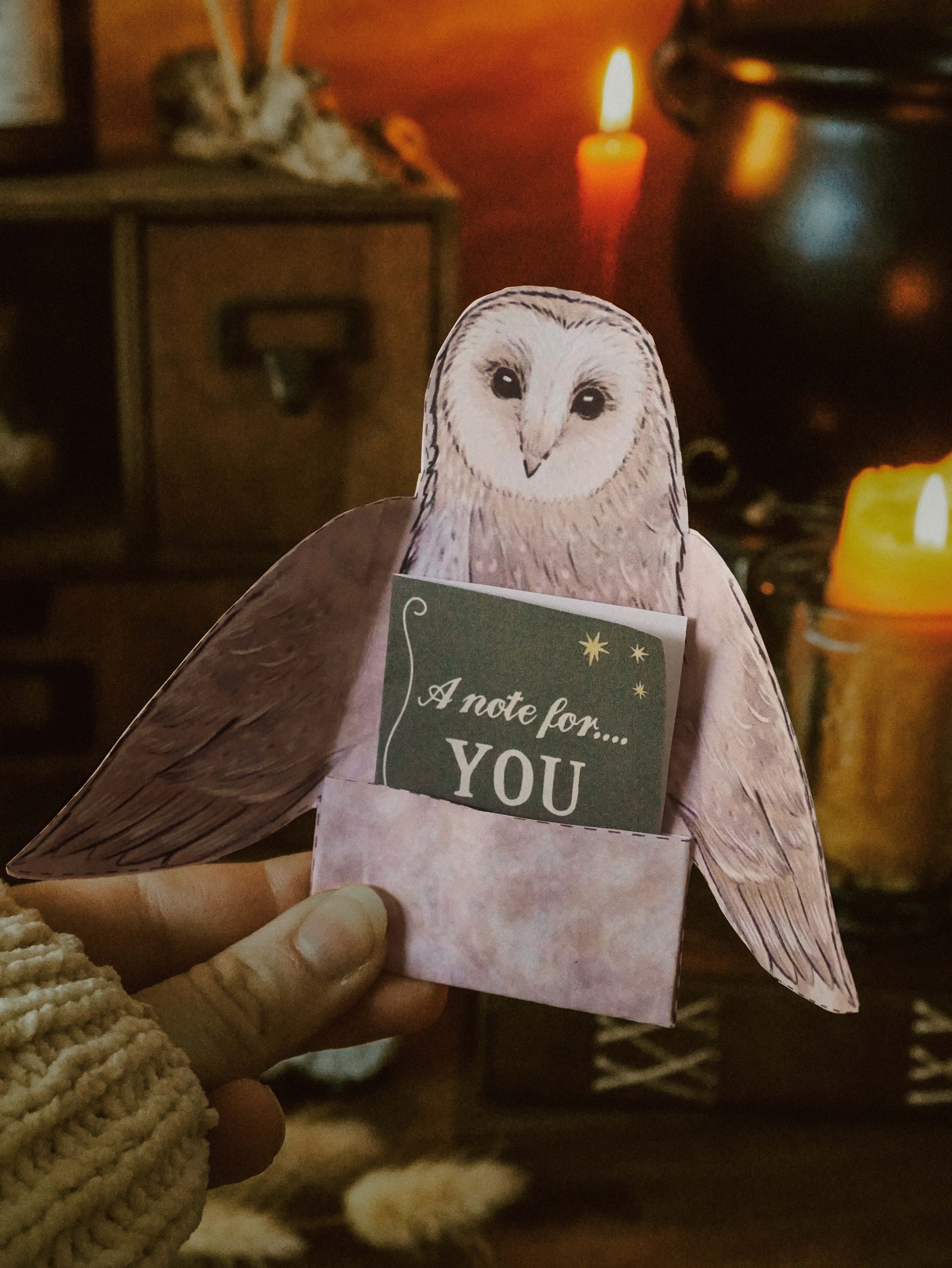 The wise barn owl gently cradles your sweet message, ready to deliver it to loved ones. Take a moment to slow down, craft with care, and sprinkle a little whimsy into your day.