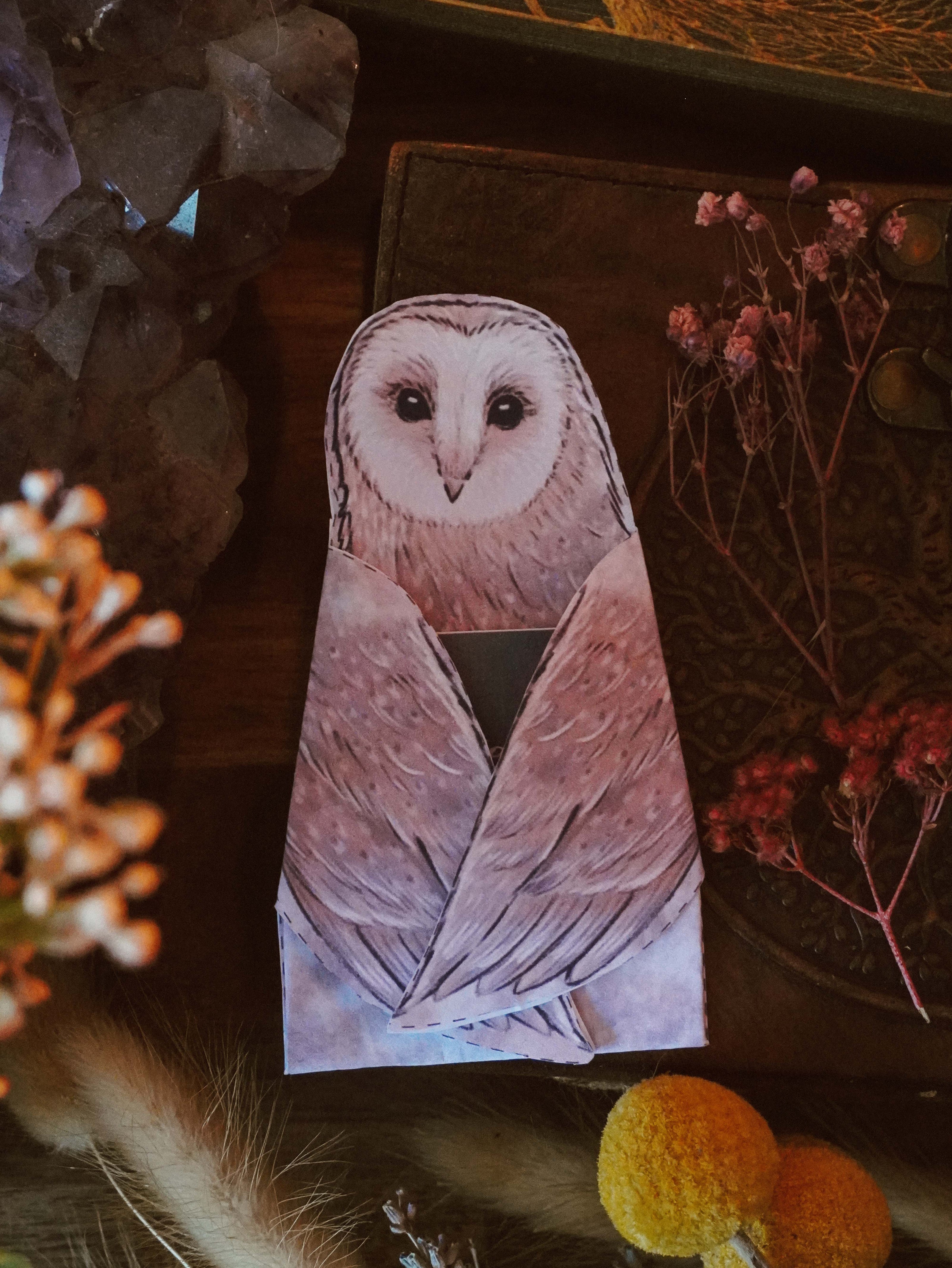 7) Tuck your folded note into the owl’s pocket. Fold the wings inward to complete your charming messenger owl.