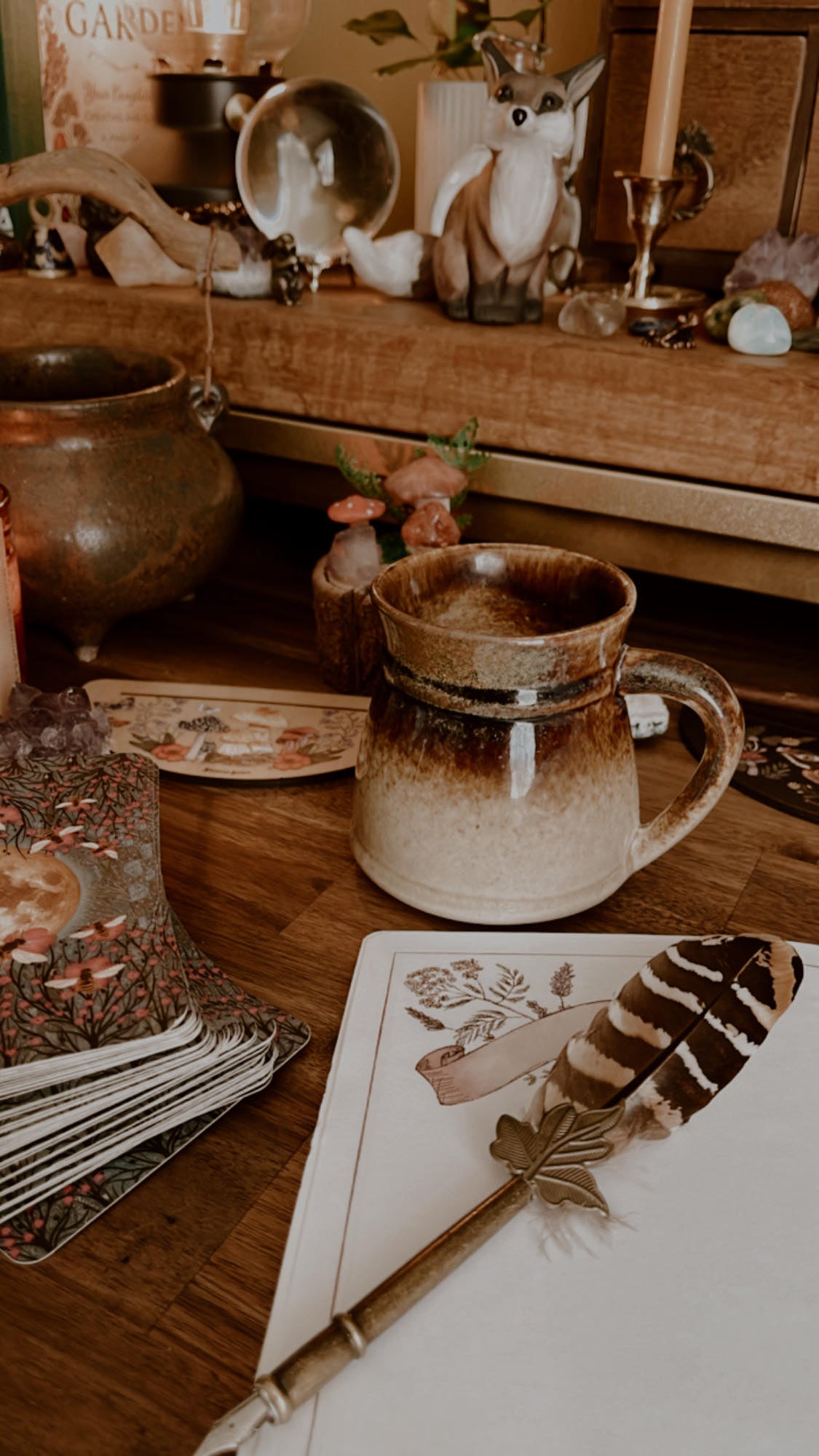 Tea, coffee, cacao or other favorite morning drink | Tarot or Oracle cards | Candle | Journal and Pen.