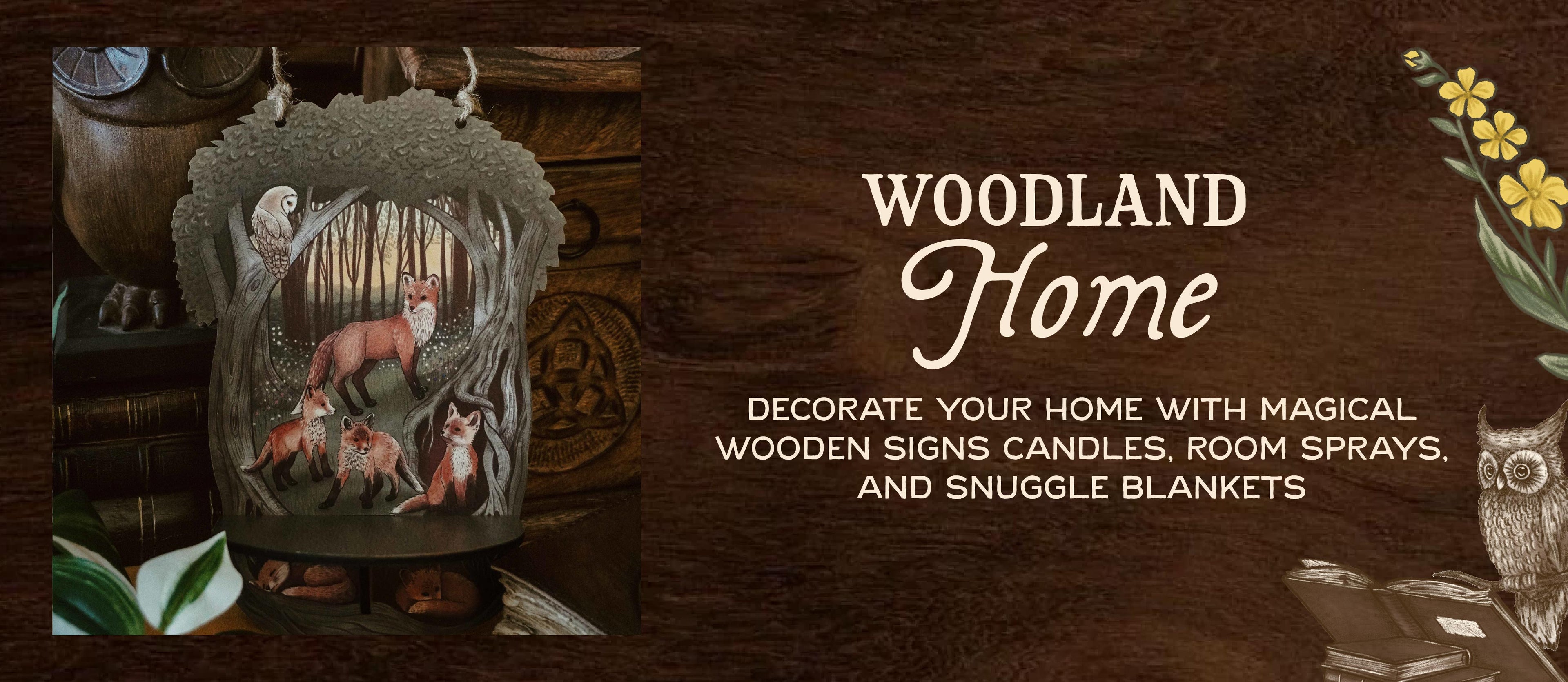 Woodland Animals Hedge Witch Cottage Wall Sign