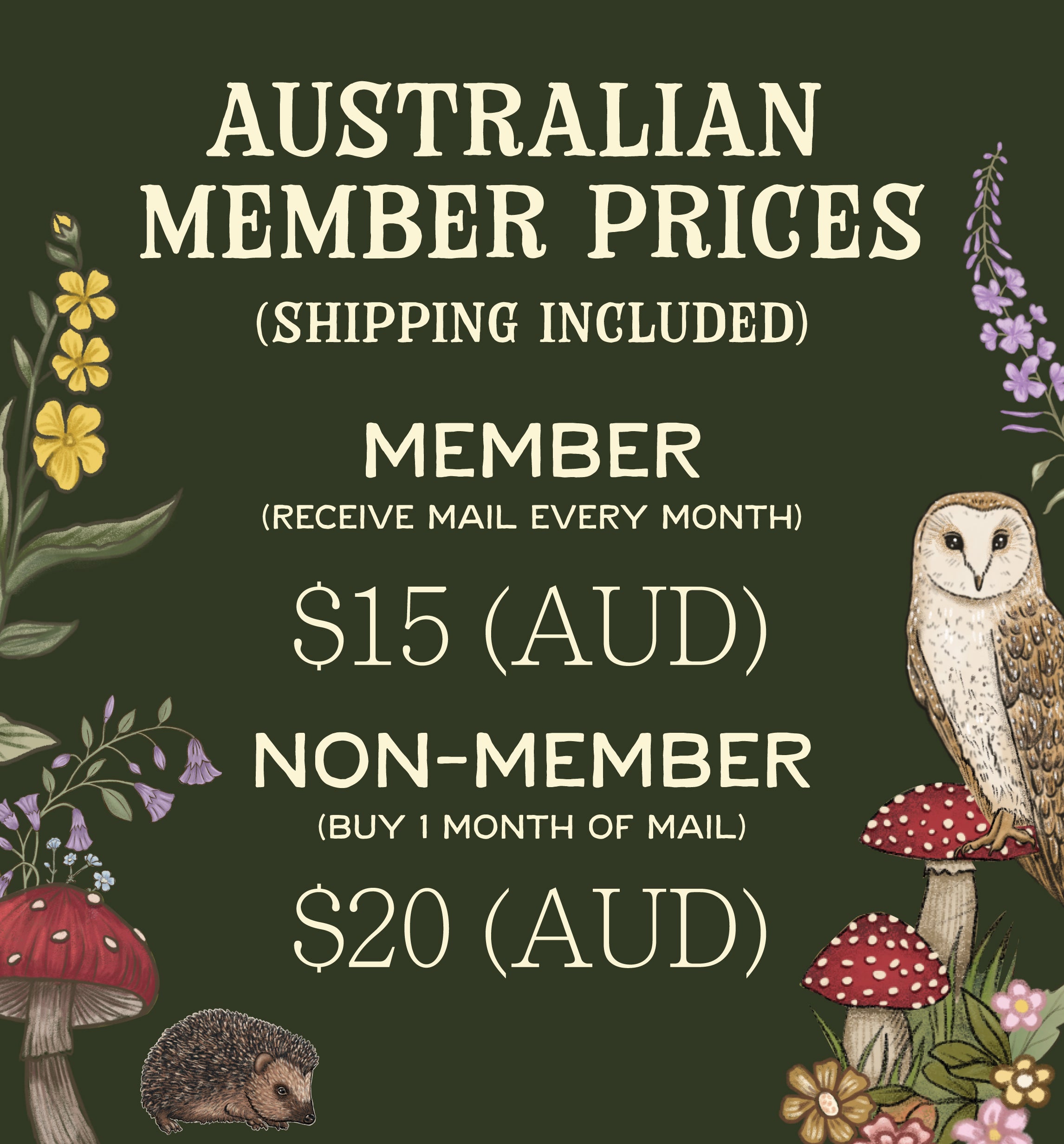 Non-member: Buy one month of mail. $20 AUD with shipping included.
