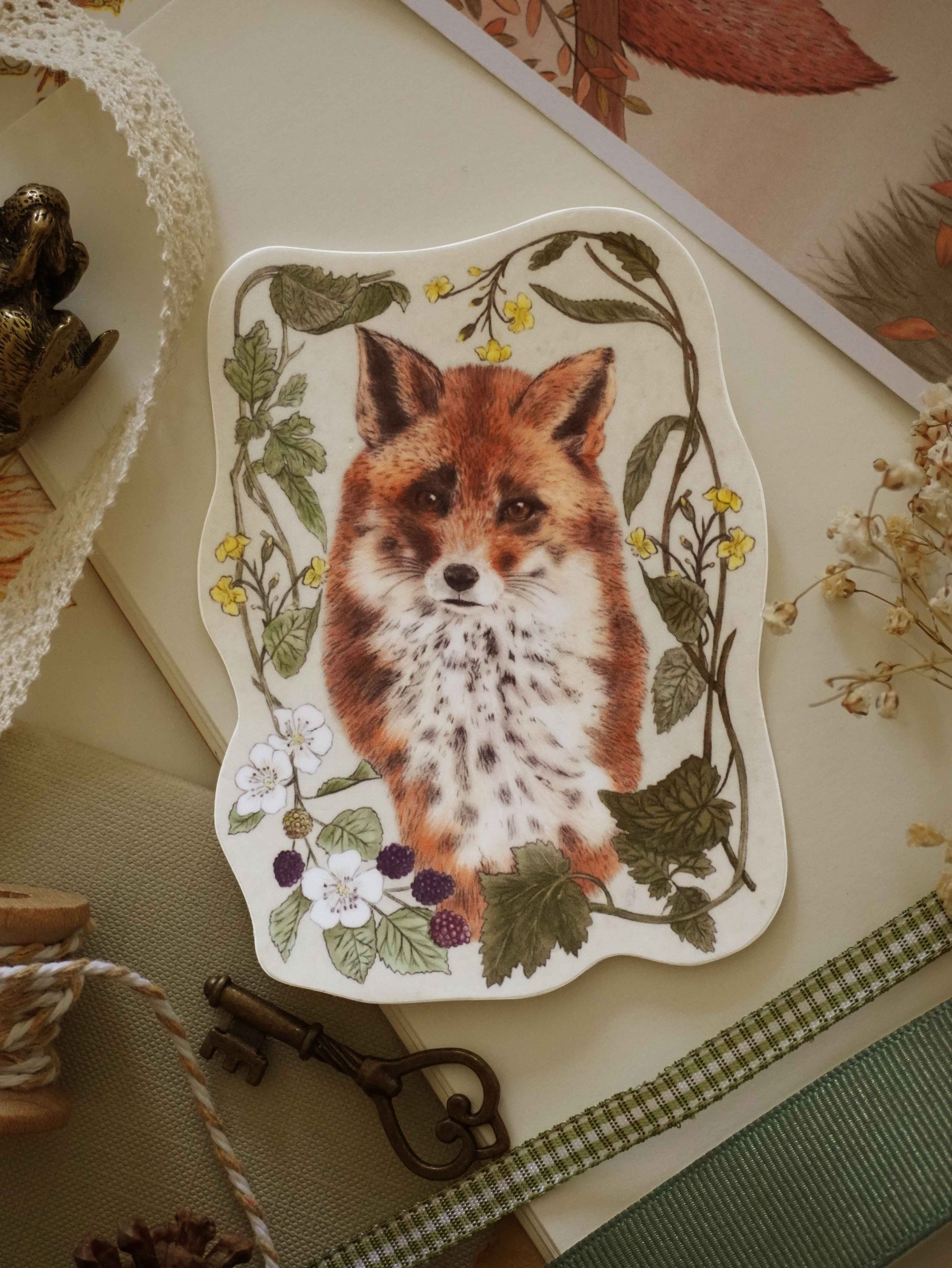 Floral Fox vinyl sticker. 10 x 7.5cm