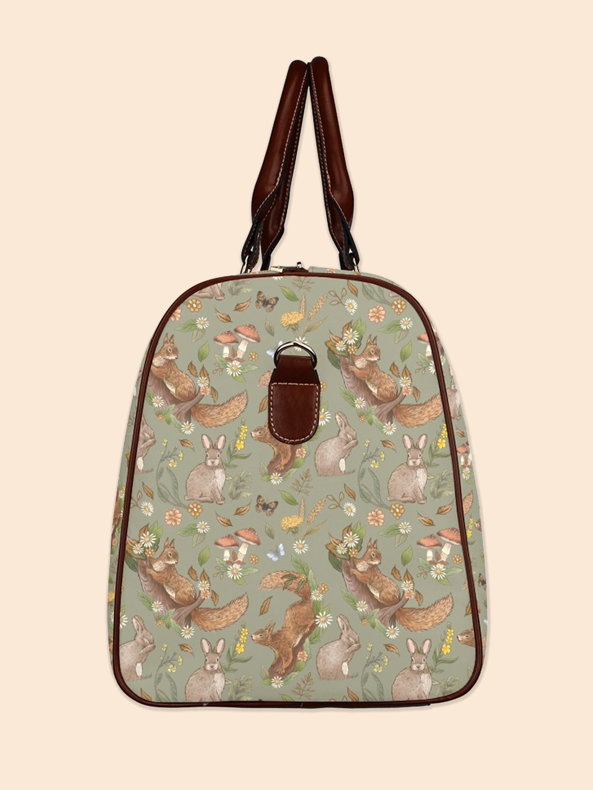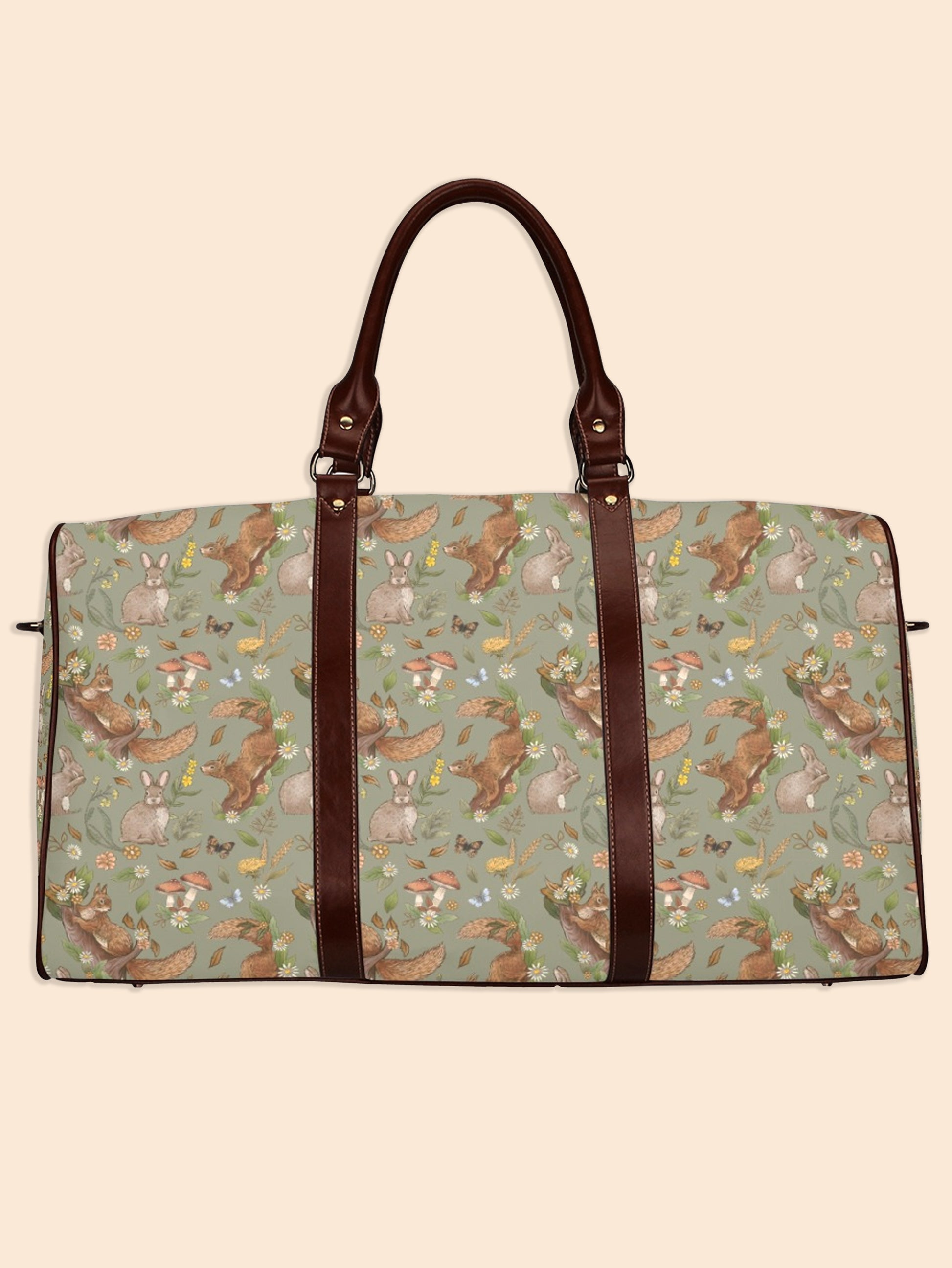Rabbits and Squirrels - Light Green Background - Waterproof Travel Bag