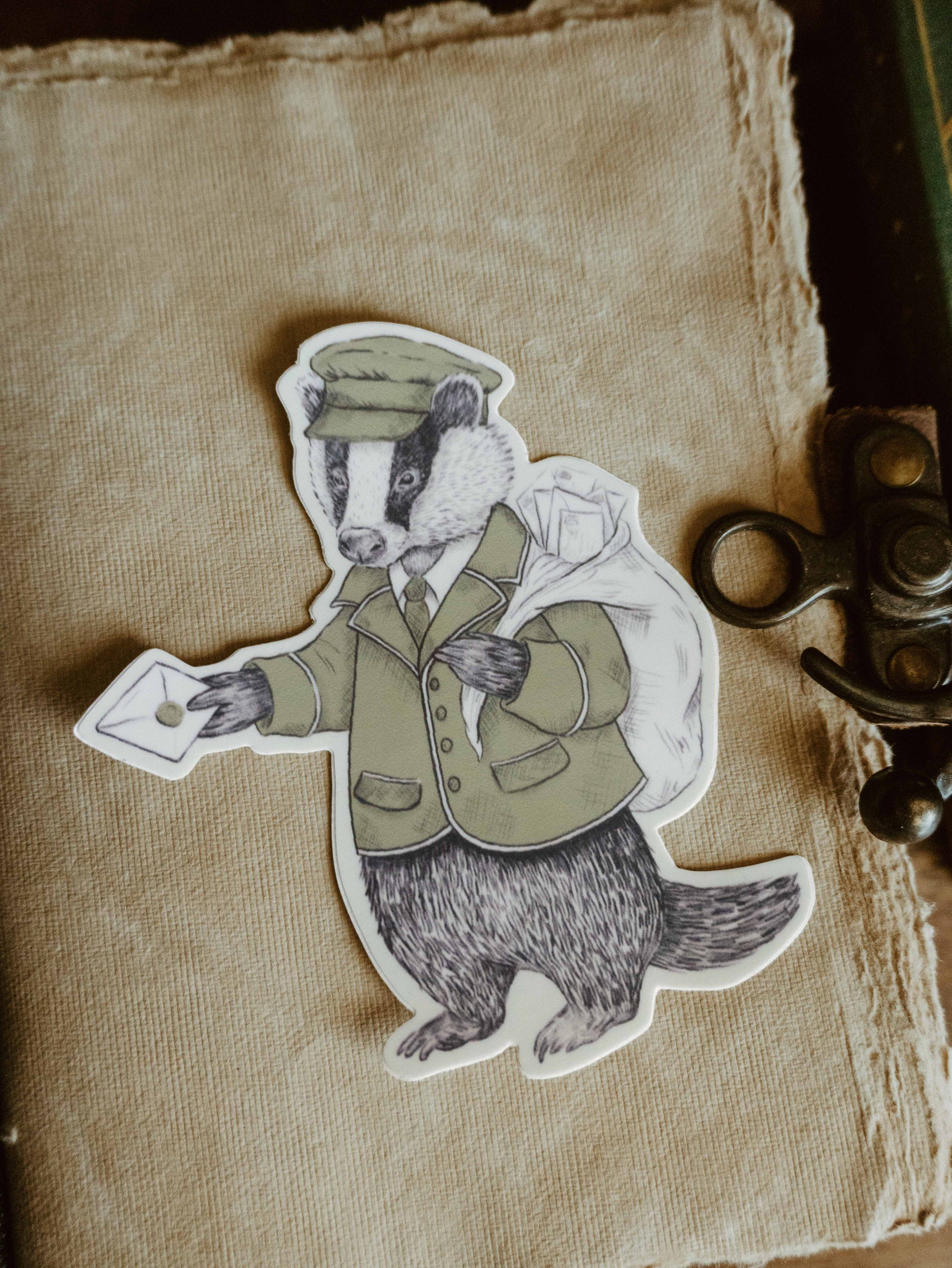 - Postie Badger, the post man of the Woodland Courier. Very handsome fella perfect for journals and water bottles.
